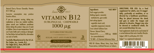 Solgar® Vitamin B12 1000 µg Sublingual - Chewable Nuggets - Pack of 250