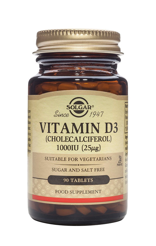 Solgar® Vitamin D3 (Cholecalciferol) 1000 IU (25 µg) Tablets - Pack of 90
